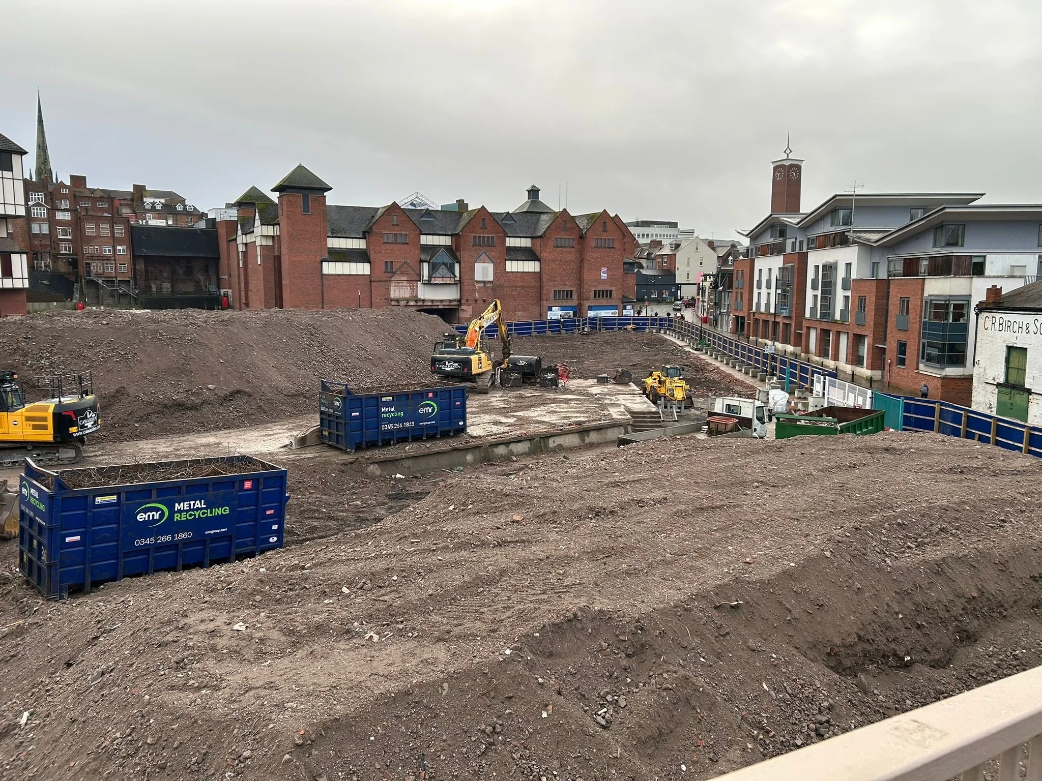 The clearing of the site marks another important step forward in the transformation of the area between the River Severn, The Darwin Centre and Roushill – paving the way for the scheme’s flagship new public park.